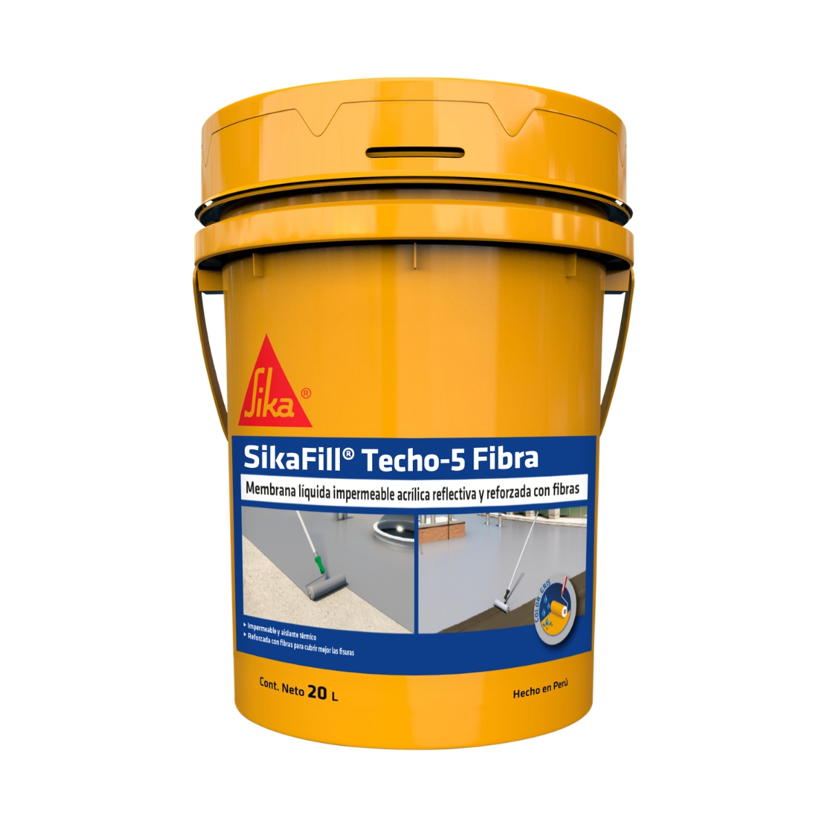 Sikafill® Techo-5 fibra es un recubrimiento elástico impermeable para la impermeabilización flexible de cubiertas y terrazas con microesferas que mejoran la capacidad de aislamiento térmico y mejorado con fibras que le permiten cubrir mejor las fisuras.