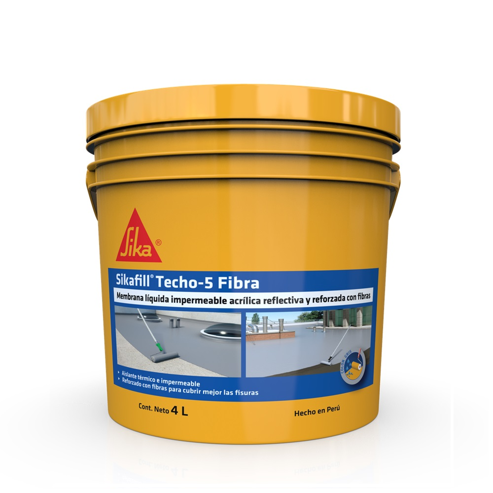 Sikafill® Techo-5 fibra es un recubrimiento elástico impermeable para la impermeabilización flexible de cubiertas y terrazas con microesferas que mejoran la capacidad de aislamiento térmico y mejorado con fibras que le permiten cubrir mejor las fisuras.