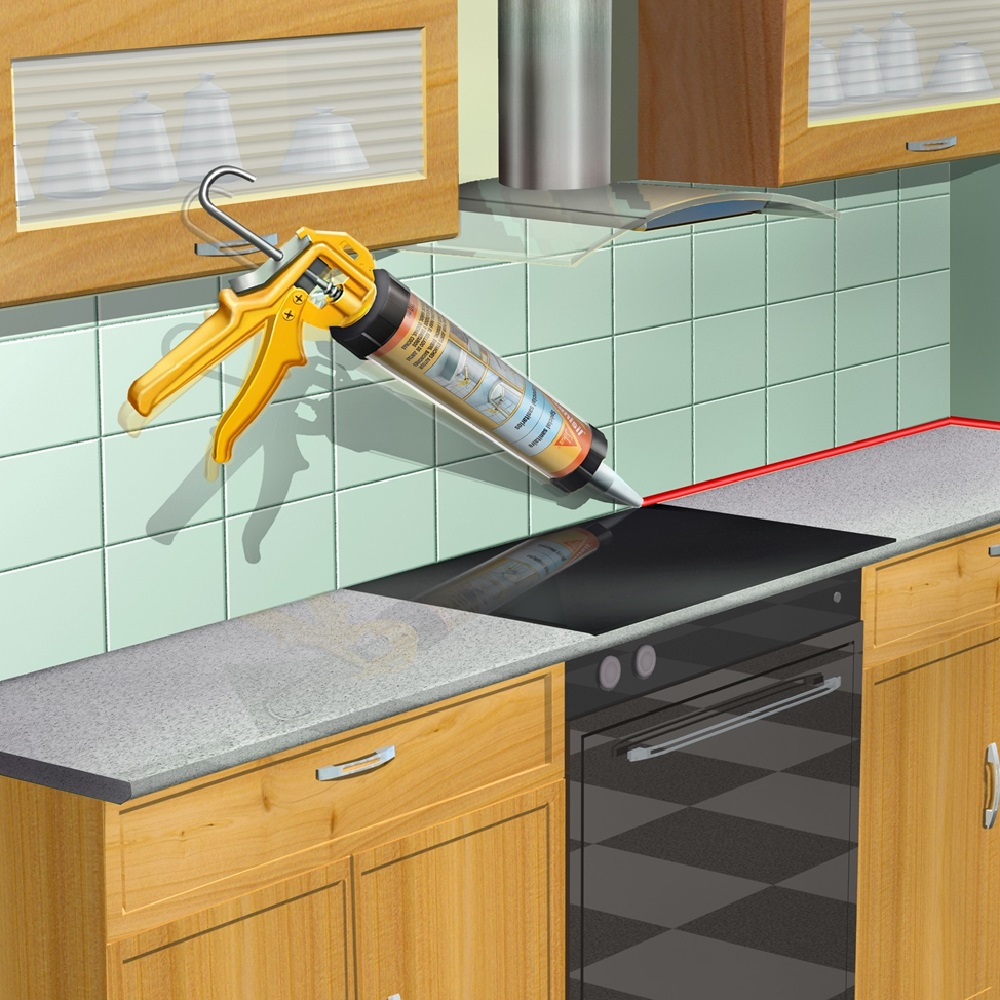 solventes. Contiene agentes fungicidas que evitan la formación de mohos y hongos. Silicona para baños y cocinas.